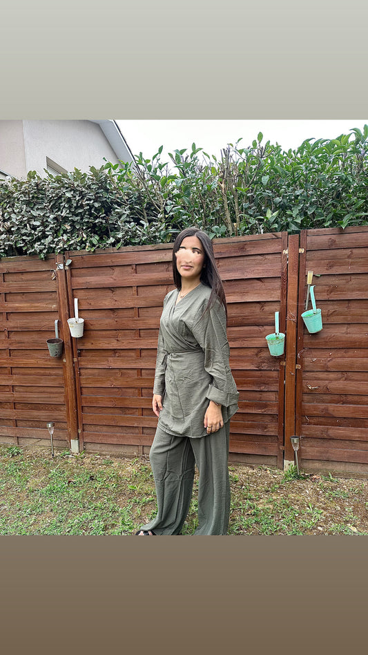 Ensemble portefeuille kaki Kenza